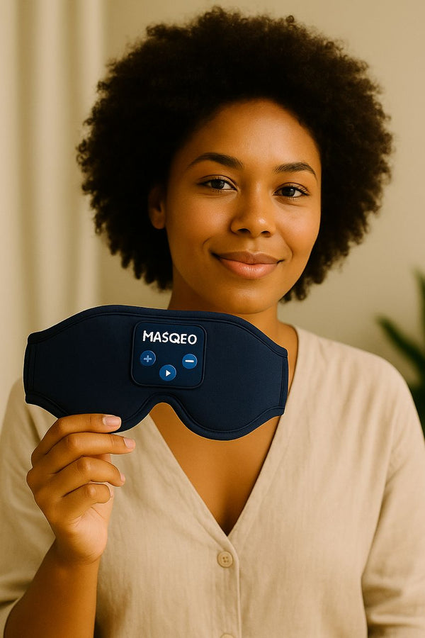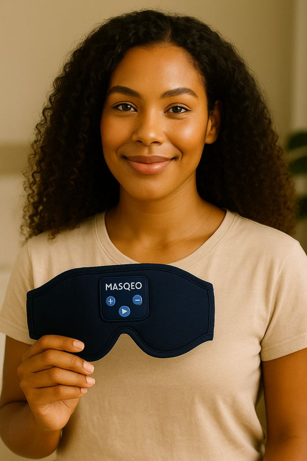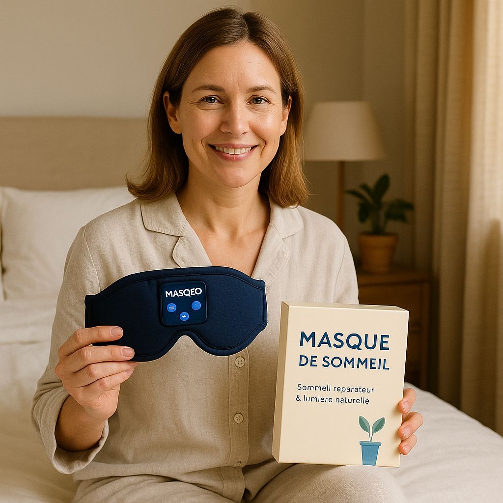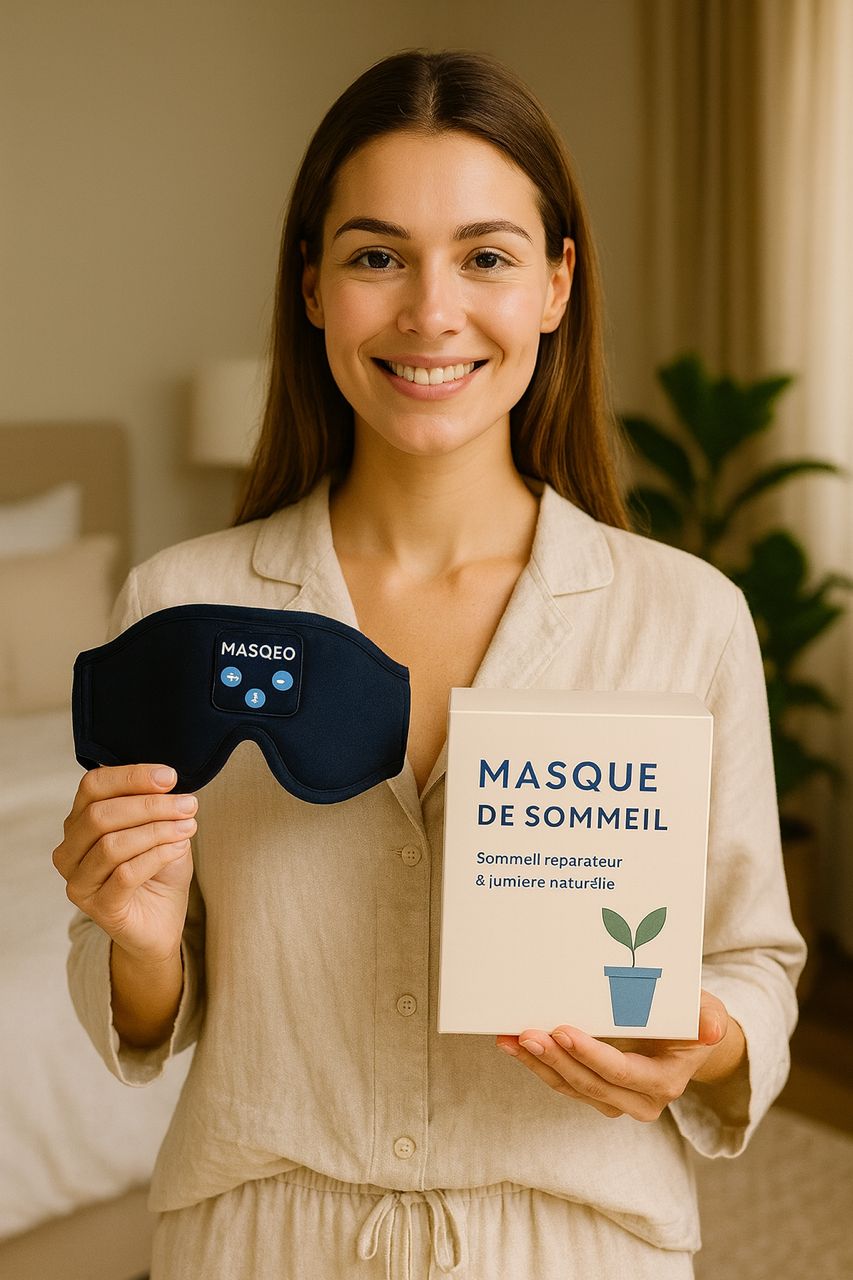 🌸 Avec Masqeo, vous plongez dans une obscurité total et profitez d'un sommeil réparateur.